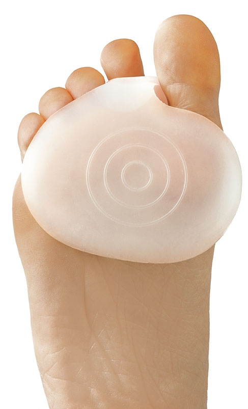 SUPPORTO METATARSALE IN SILICONE MEDICALE Cuscinetto in morbido Silicone per il sostegno e la protezione delle teste dei metatarsi. Design anatomico. Anello digitale con inserto tubolare elastico, serve per mantenere il dispositivo sempre nella corretta posizione, agganciandolo al primo o secondo dito. Resistente allo sfaldamento e alle sollecitazioni. Allevia il dolore da sovraccarico e la sensazione di bruciore alla base delle dita.