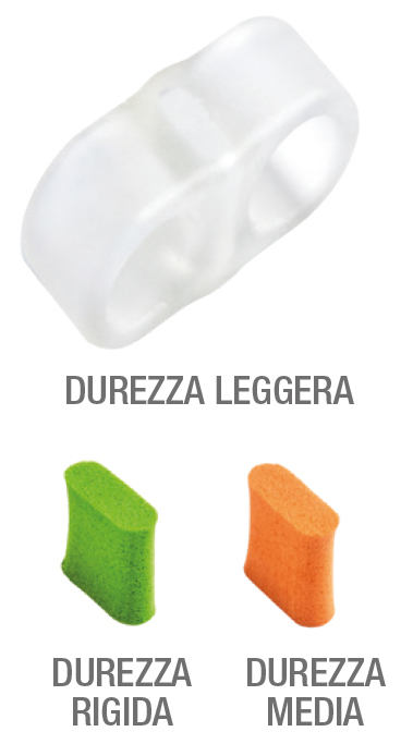 Inserendo uno dei due spessori all’interno, si garantisce la spinta di allineamento per una corretta separazione tra 3°, 4° e 5° dito, oppure avere una delicata separazione senza inserti.