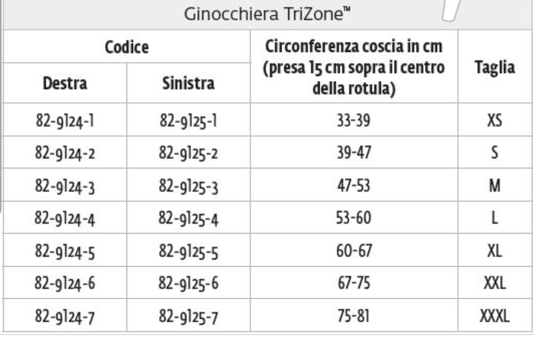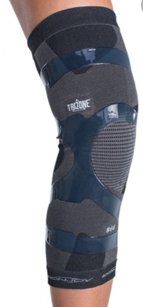 La ginocchiera Trizone è dotata di tre differenti zone di compressione del tessuto, fasce in silicone integrate nella ginocchiera per differenziare le compressioni. Le tre zone agiscono sull'area del muscolo e dell'articolazione. Il Tessuto della ginocchiera è in fibra di bambù ed è antimicrobico e antiodore e mantiene la cute fresca, bordo antiscivolo sulla parte superiore della coscia.